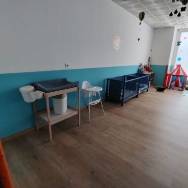 - Camas individuales y mobiliario adaptado y seguro para bebés